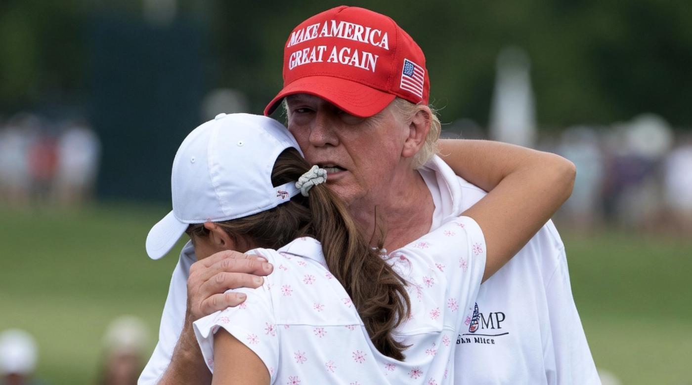 Trump hugs young woman on golf course