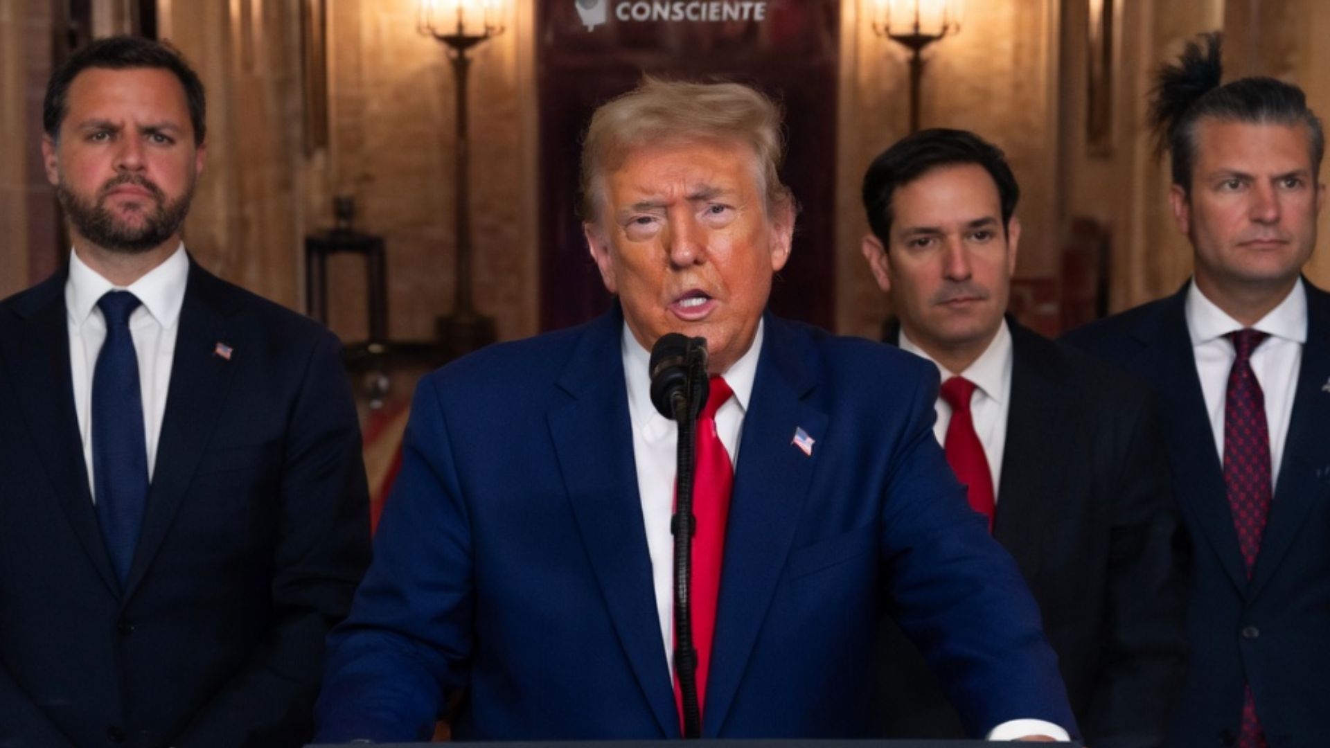 In a brief address from the Oval Office, President of the United States warned that any attack would receive an overwhelming response. The statement emphasized a strategy of total deterrence.
